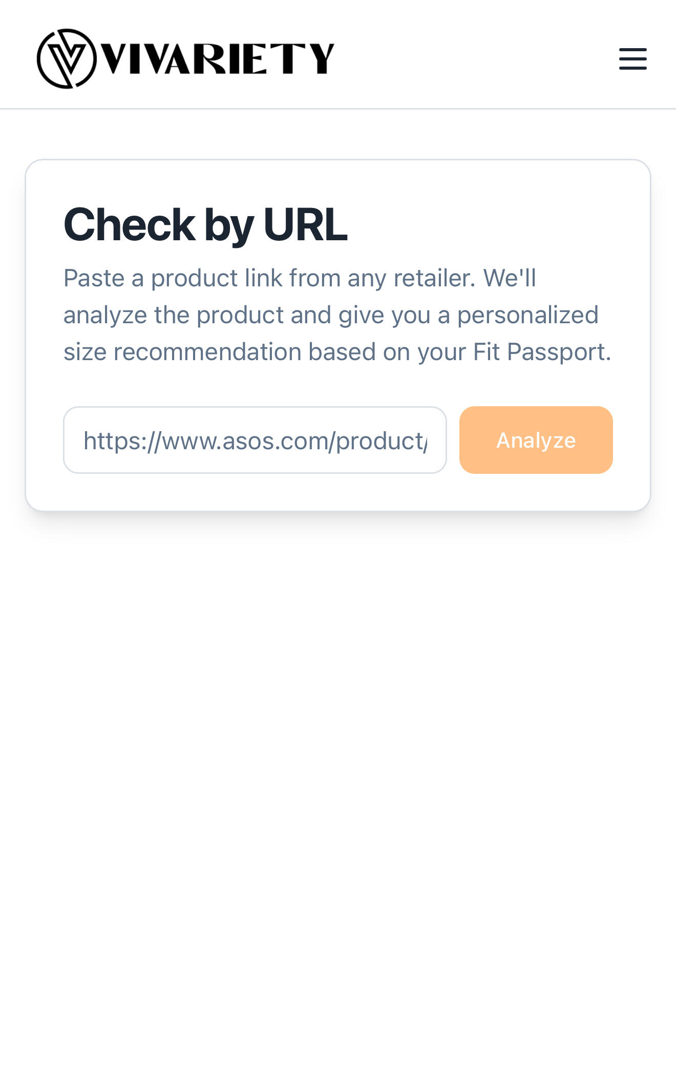 Vivariety helps you find your perfect fit... Say goodbye to returns. No more frustration. Just clothes that actually fit you.